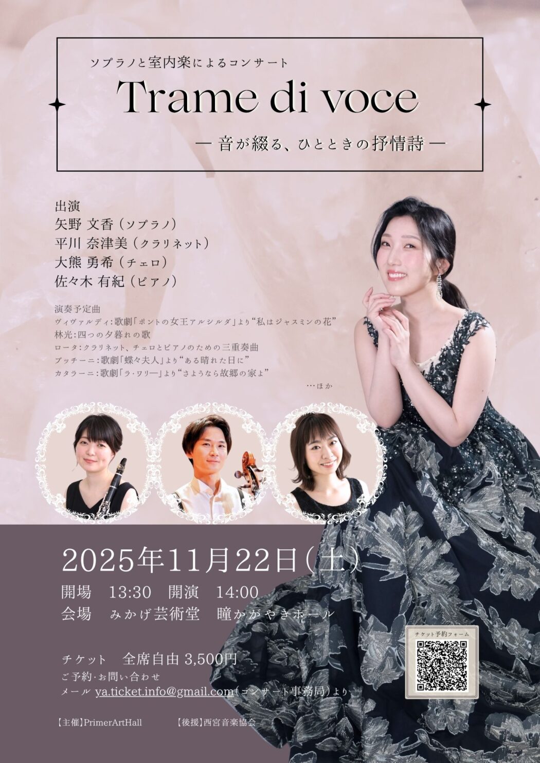 - メール: ya.ticket.info@gmail.com(ソプラノ事務局)